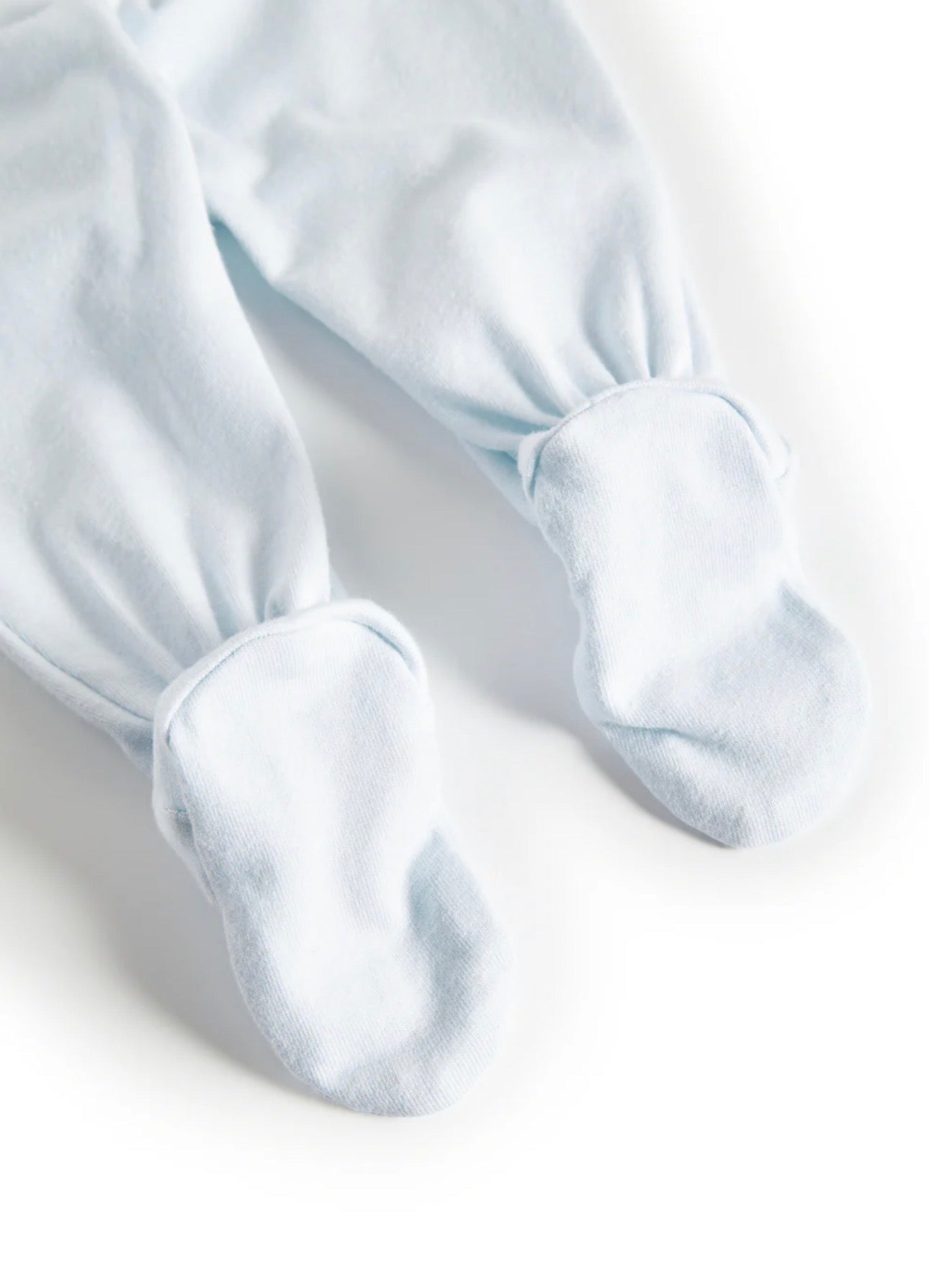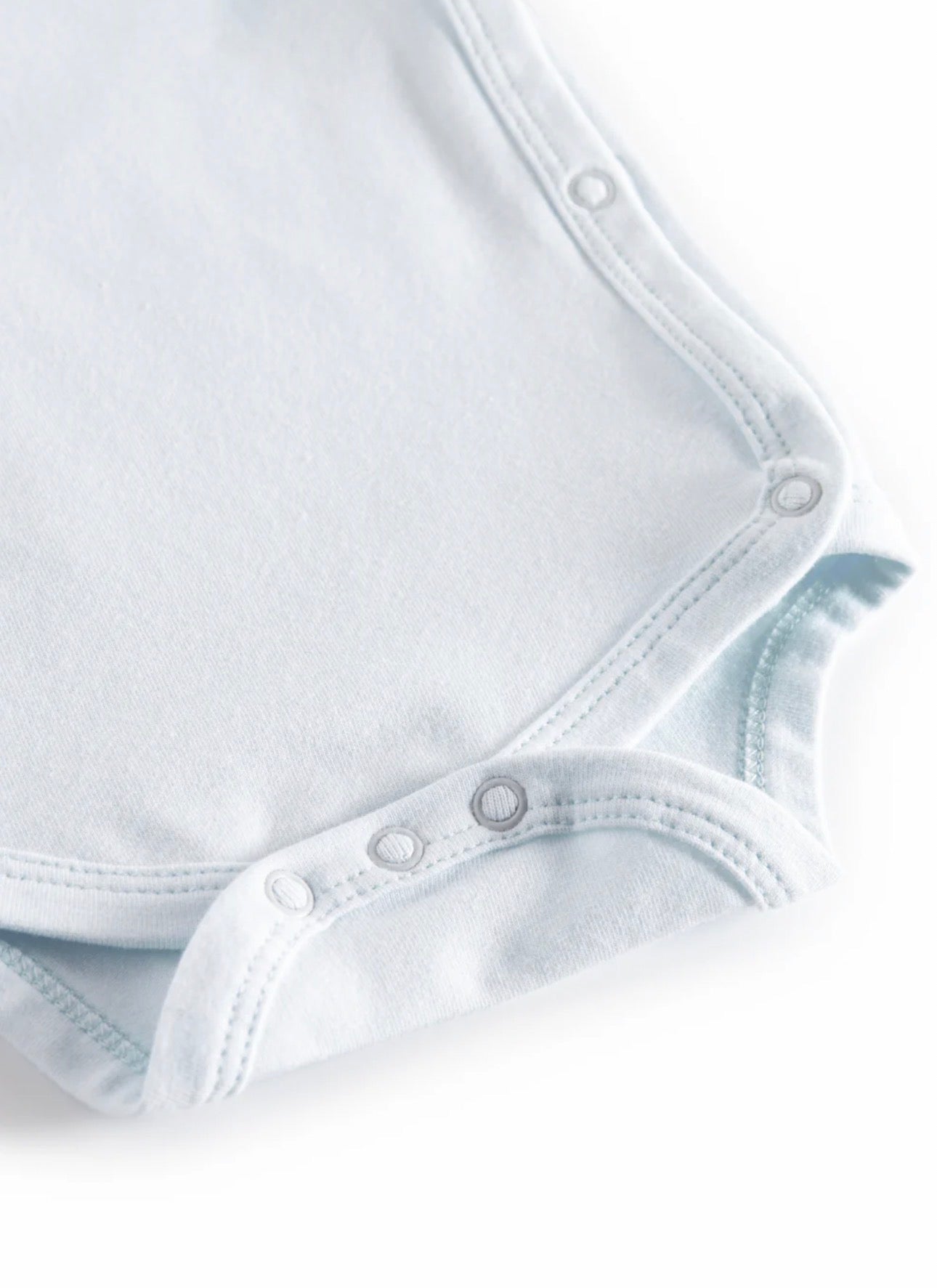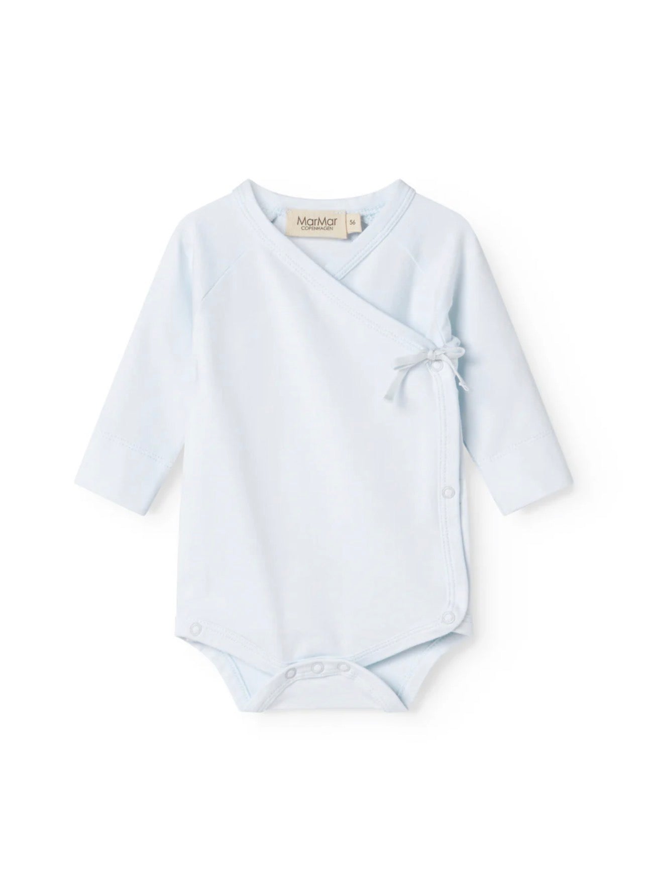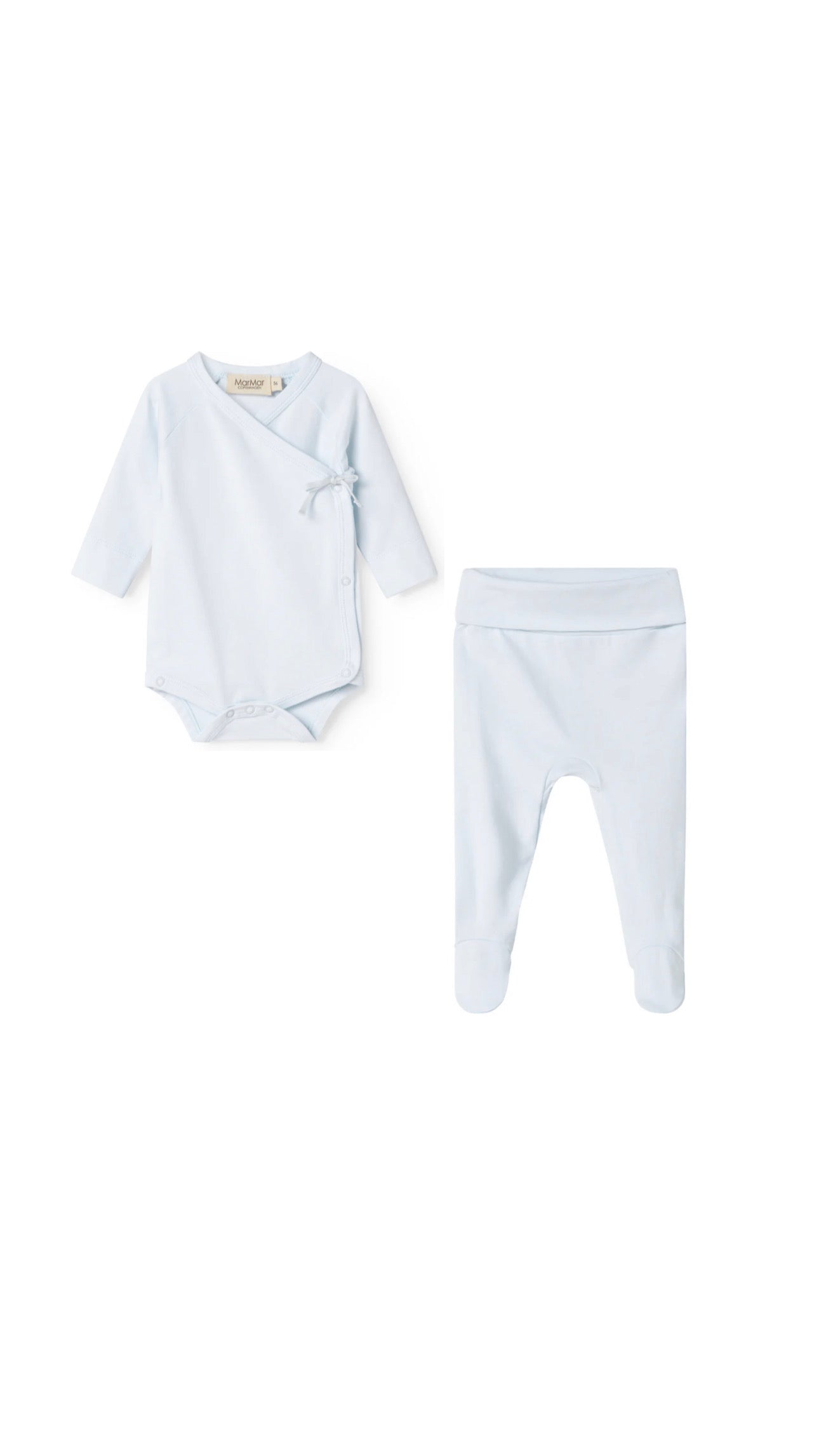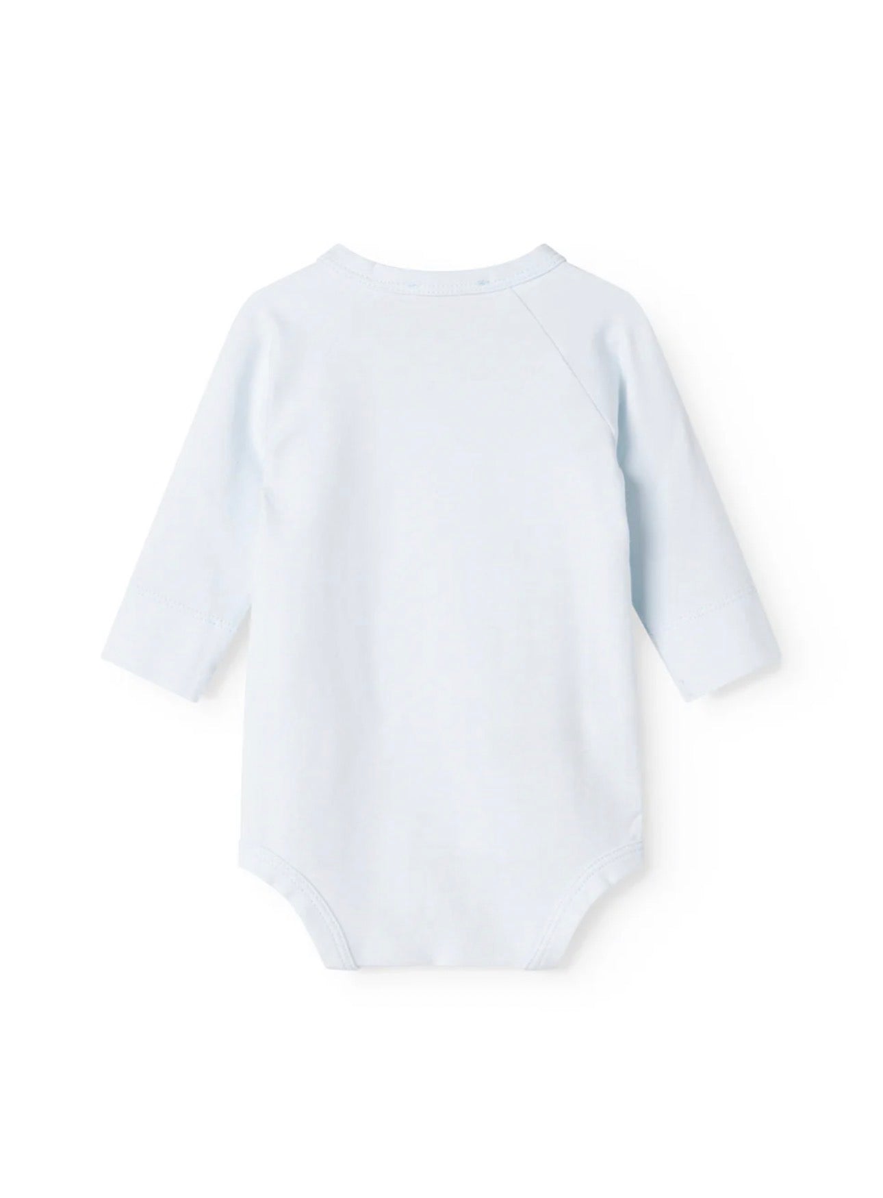 Long-sleeved bodystocking for newborns with wrap-around closure.