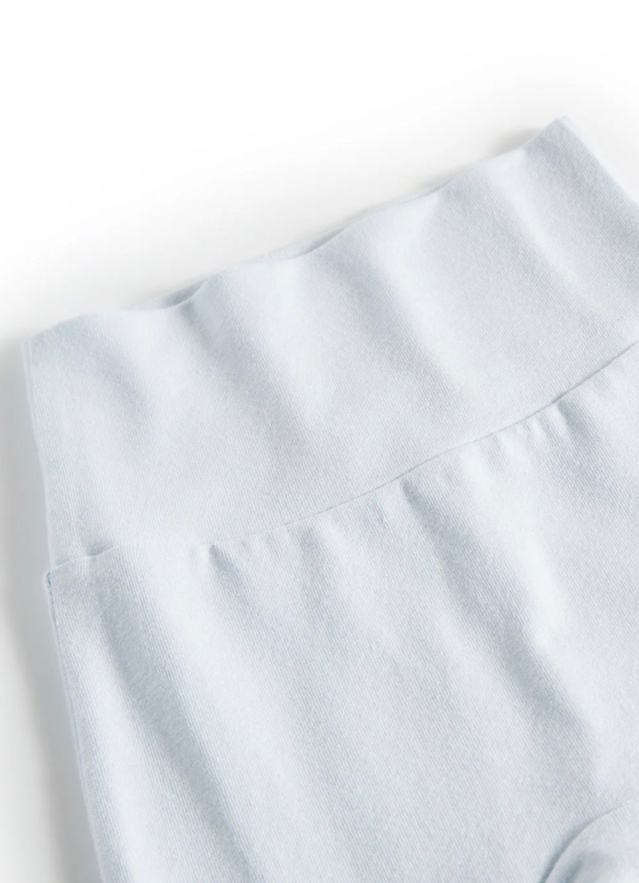 Comfortable pants with feet for newborns. The pants are soft, hold their shape and color, and have elastane in them, which makes them stretchy and comfortable to wear.