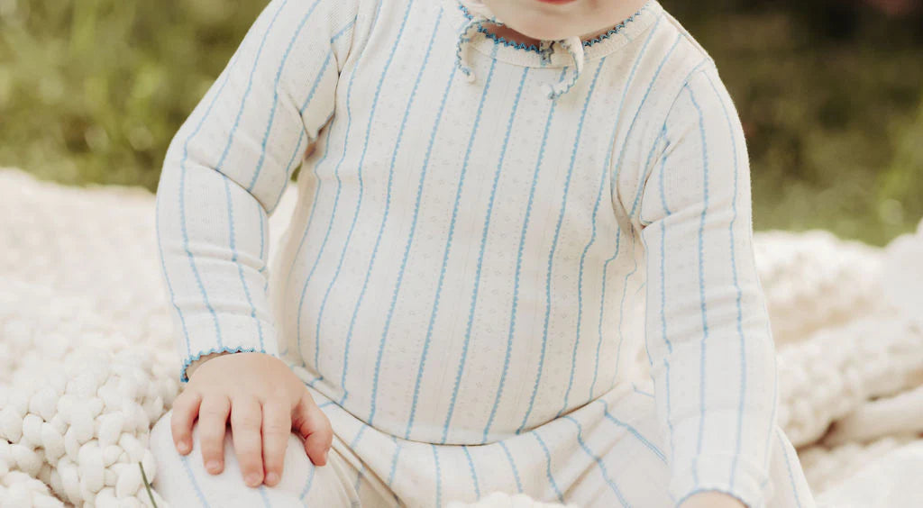 Add a touch of whimsy with our dainty scallop print footie. This footie features a delicate and soft charming design and is a lovely blend of sweet and sophisticated, perfect for everyday wear.