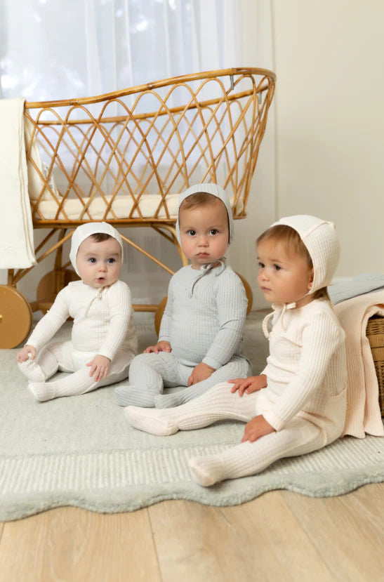 Expertly crafted with a delicate dainty rope design, this champagne pink footie and hat set from Bee & Dee is perfect for your little one's first outfit. The cozy pointelle fabric provides comfort while the subtle colors add a touch of elegance. The perfect take-me-home outfit for your newborn.