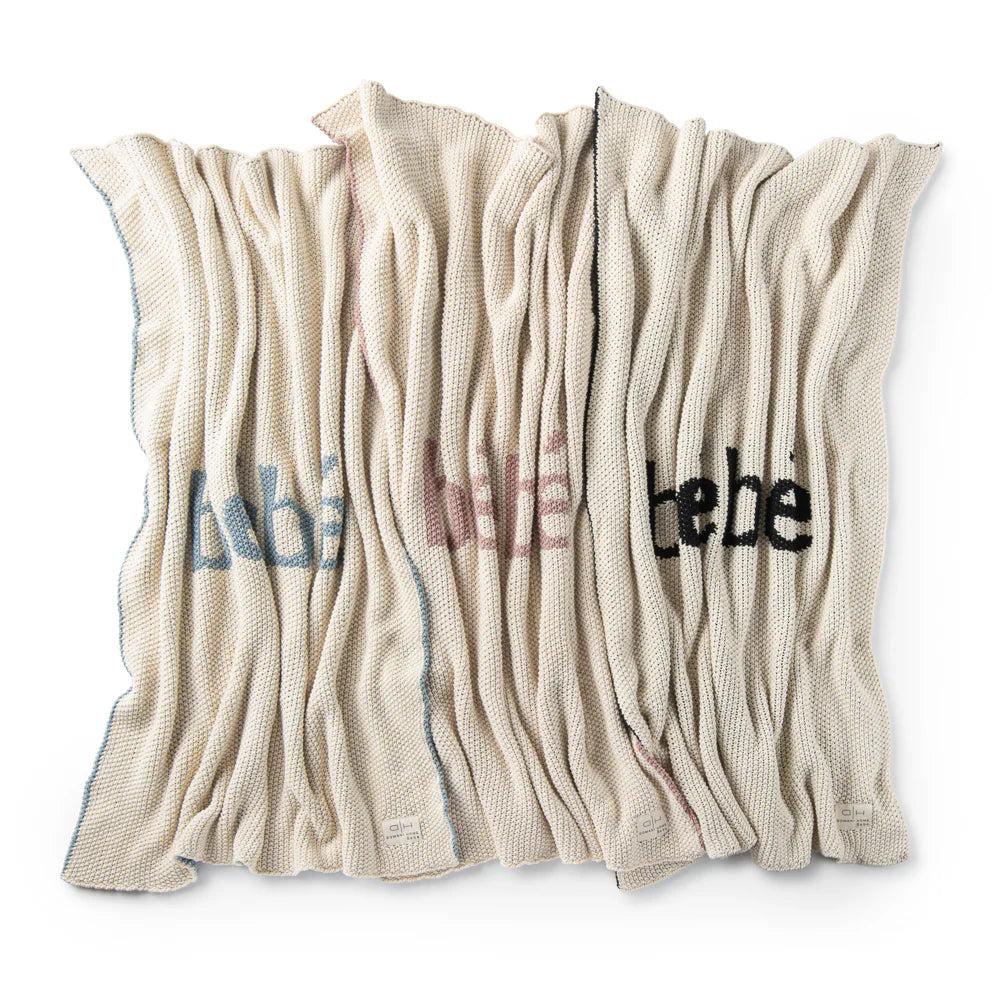 Featuring the word bebe in the center. This soft & chunky reversible blanket is a trendy favorite.