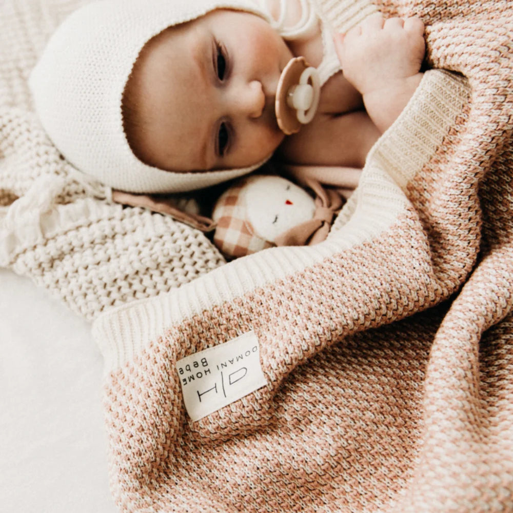 The Brunello baby blanket is designed with a linear dotted design, finished with a natural border. Soft to the touch this mid - weight blanket is an everyday staple perfect all year round.