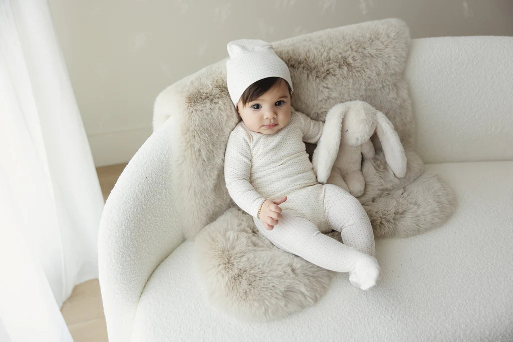 This Lilette Diamond Dot Footie and Hat set in Cream and Pink offers a refined blend of comfort and style for your baby. Crafted with soft, breathable fabric, it ensures gentle warmth and a cozy fit. The delicate diamond dot pattern adds a subtle, elegant touch, making it perfect for everyday wear or special occasions. Designed by experts, this set supports your baby's comfort while providing a sophisticated look.