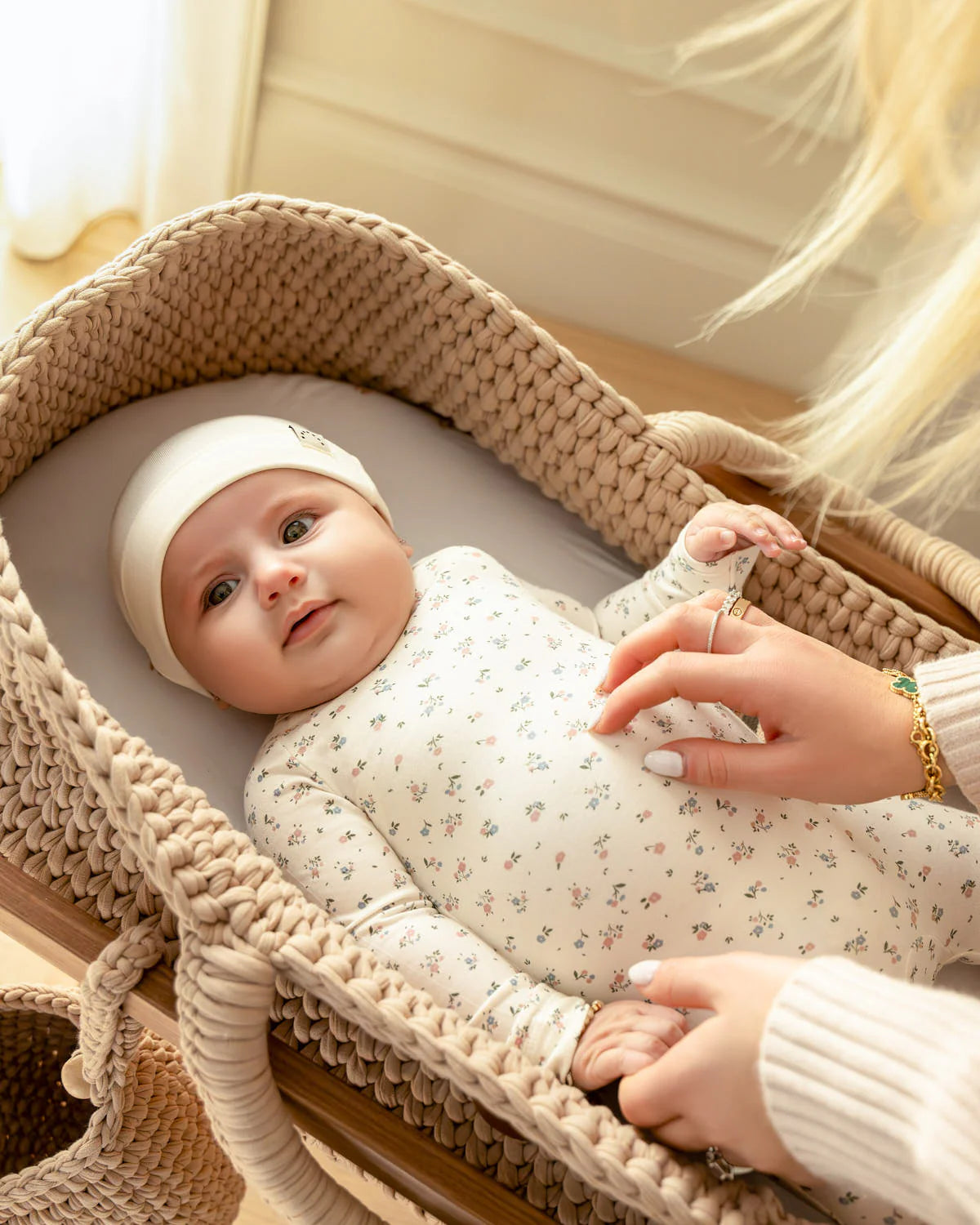 She'll look and feel like a fairy princess in our pretty floral-print footie. It's covered with dainty blossoms for ultimate feminine flair. Plus, it's supremely comfy, thanks to its soft, stretchy fabric. The snap collar and hidden zipper allow easy diaper changes, while the gently elasticized feet keep her cozy down to her toes.