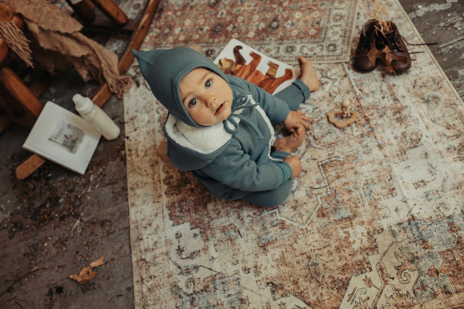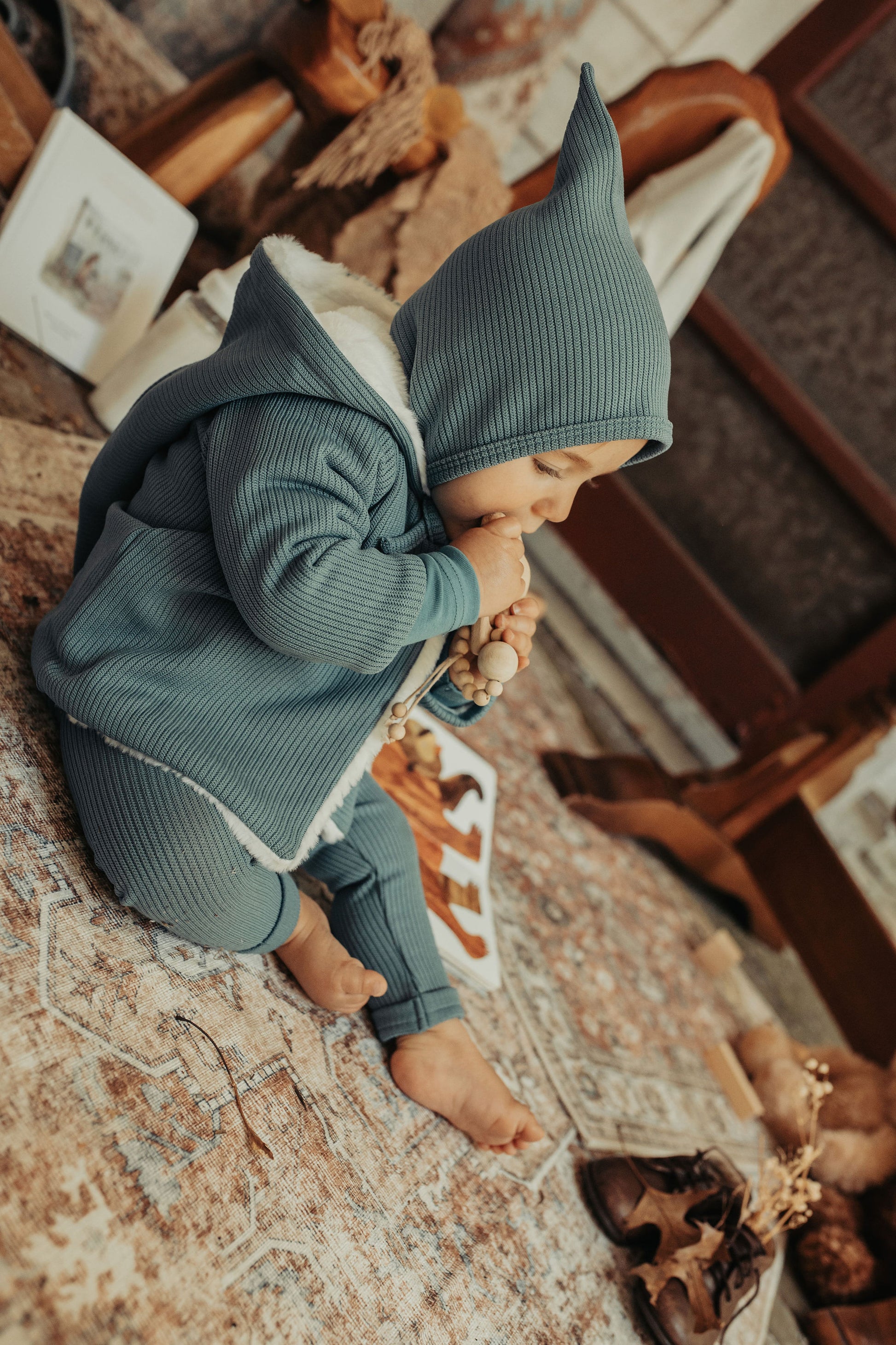 Kimono Fur Lined Jacket & Bonnet