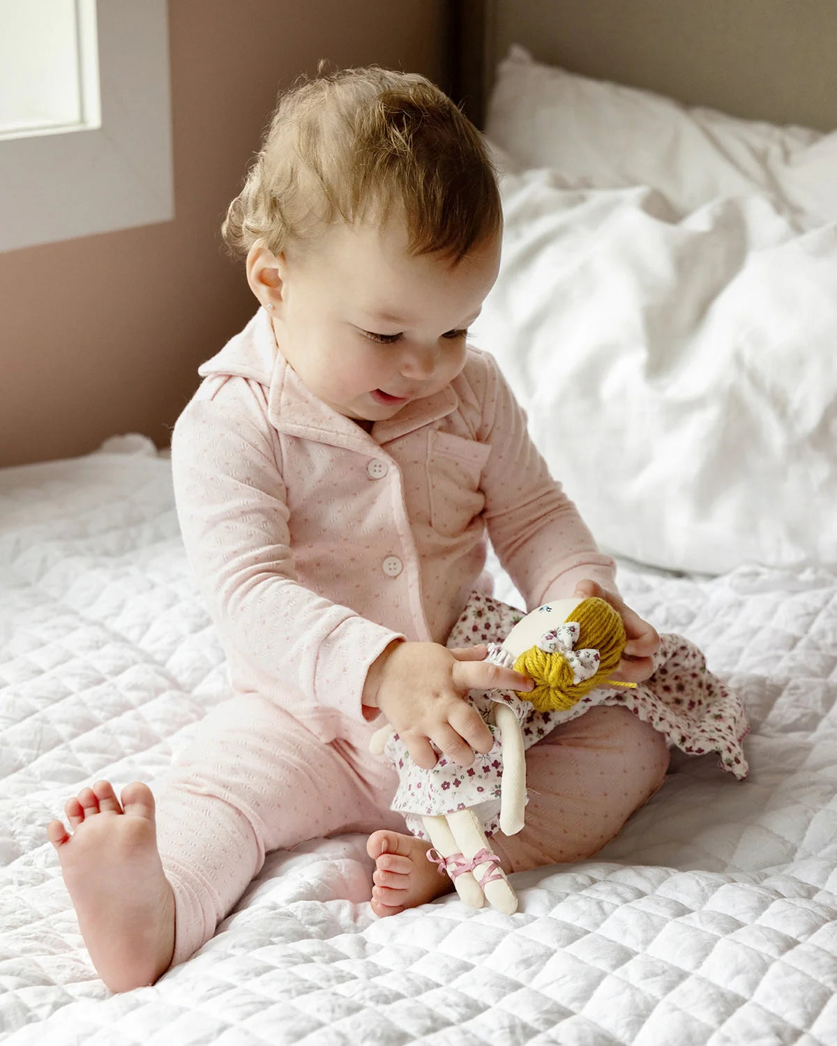 Details make all the difference for these adorable girls' pajamas. From their 3-button top to their elastic-waist bottoms, they're loaded with cuteness and charm. Plus, they're crafted for blissful comfort with buttery-soft rayon from bamboo. Finishing touch? An airy pointelle pattern covered with dainty hearts.